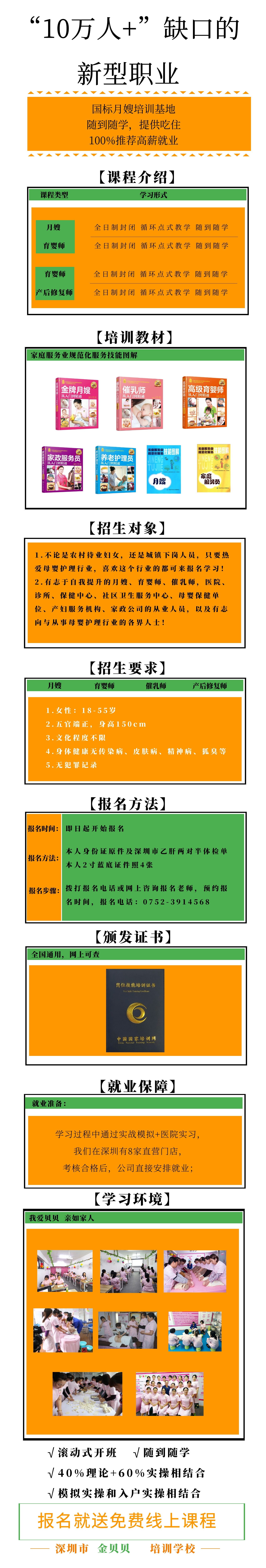 培训项目:月嫂培训、育婴师培训、产康培训;